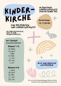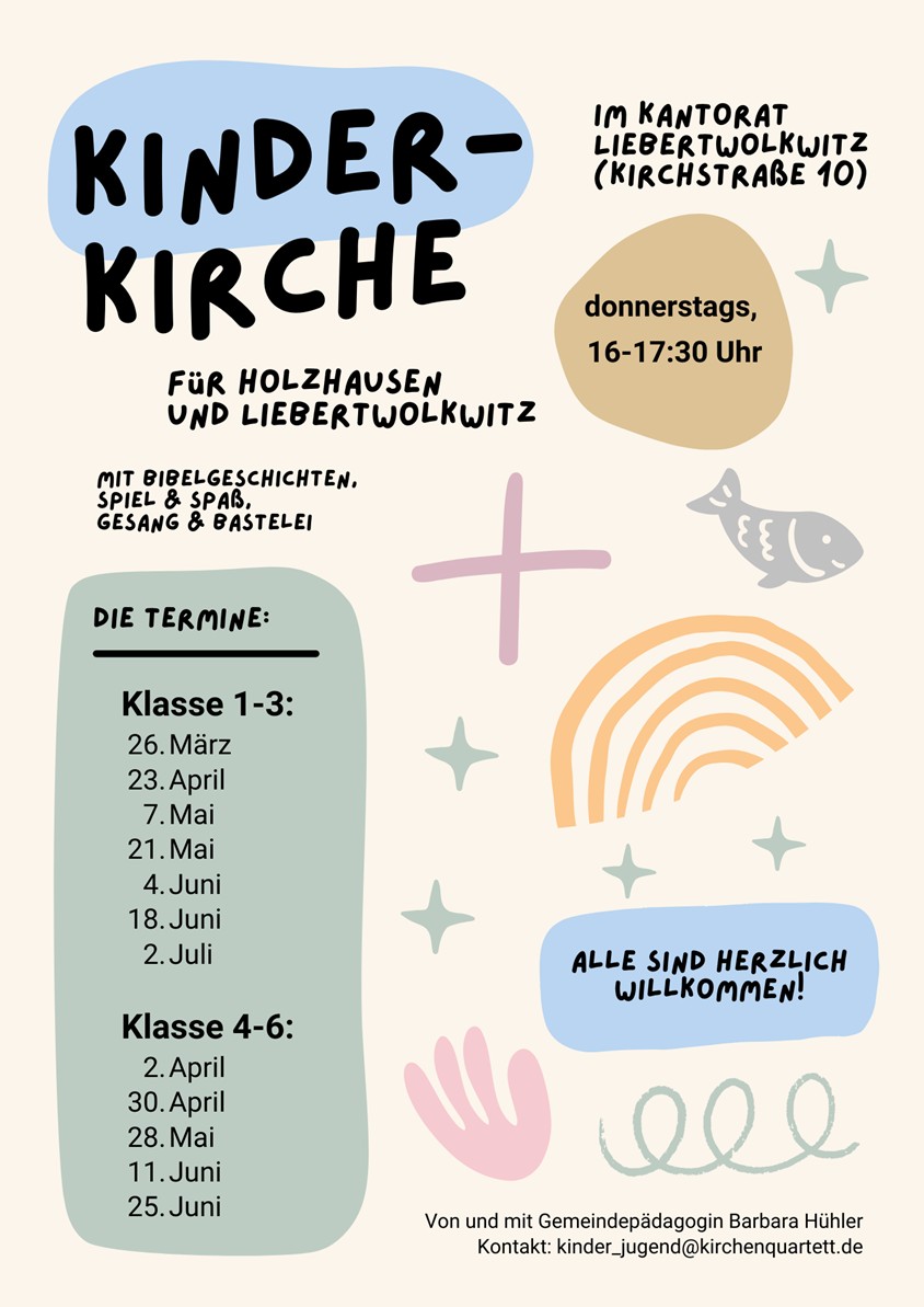 - 05. April, 10:15 Uhr, Ostersonntag: Familiengottesdienst in der Kirche Liebertwolkwitz.